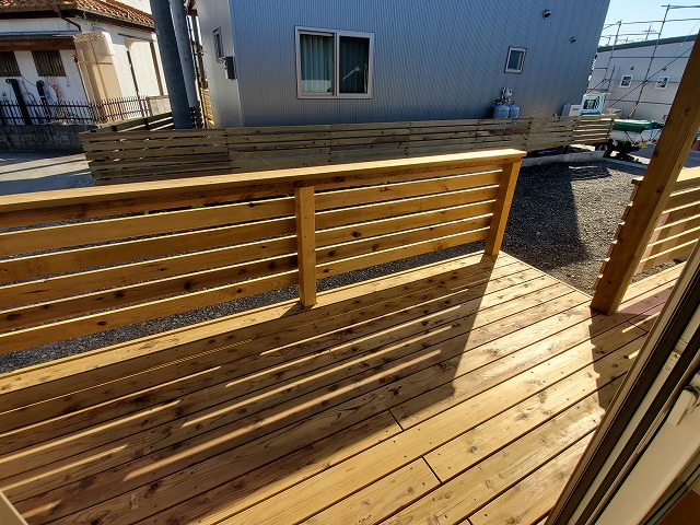 広い庭、ウッドデッキ付