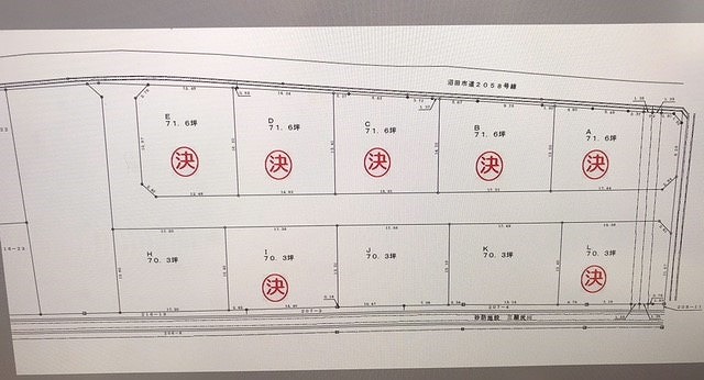 備考 | 全12区画に分譲予定です。(上下水道引込予定) スーパー・ドラッグストア・病院が近くとても便利な所です。 現在、区画はH・J・Kご紹介可能です。 |